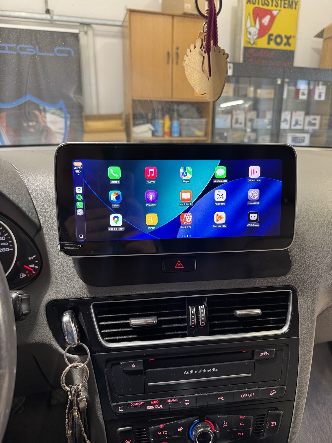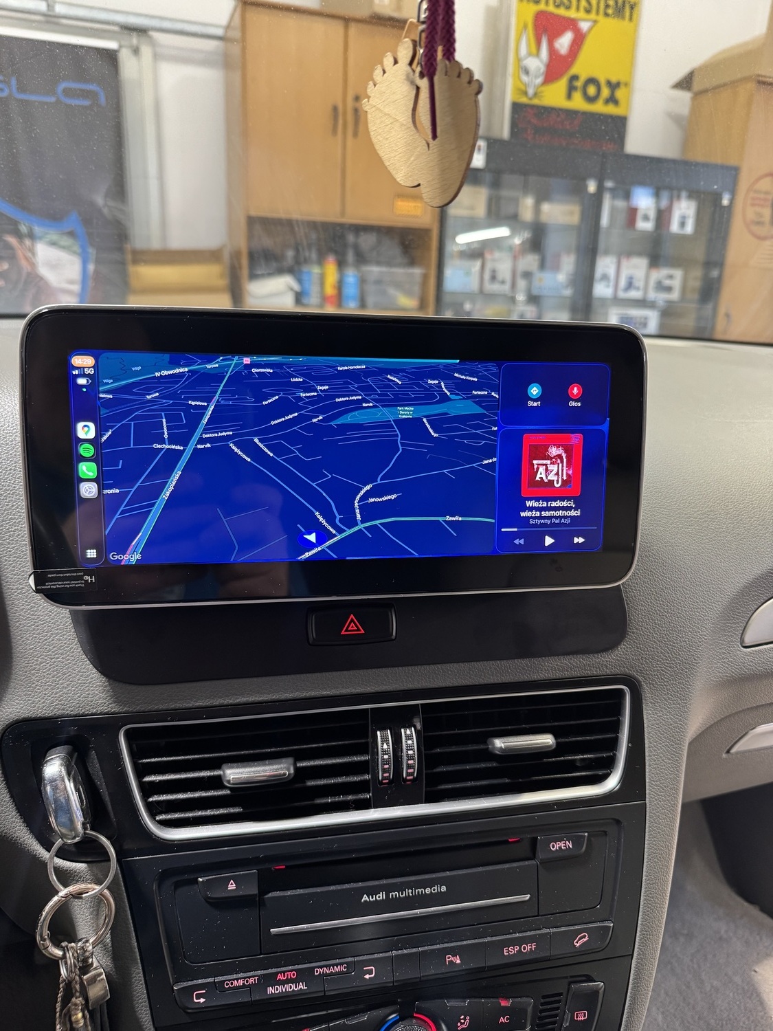 Możliwość zamontowania nawigacji do Audi Q5 w aucie z fabryczną nawigacją, mamy wtedy wybór czy chcemy korzystać z fabrycznej nawigacji czy np z map internetowych Google Maps lub np Yanosika.