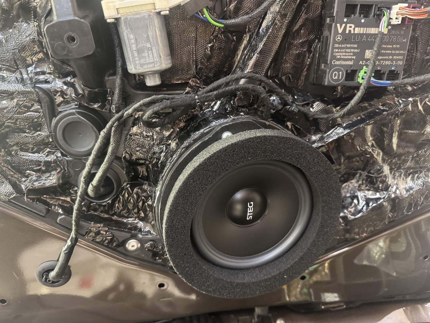 Mercedes V Klasa Montaż Głośników z Przodu STEG LEO 650C z Częściowym Wygłuszeniem Drzwi