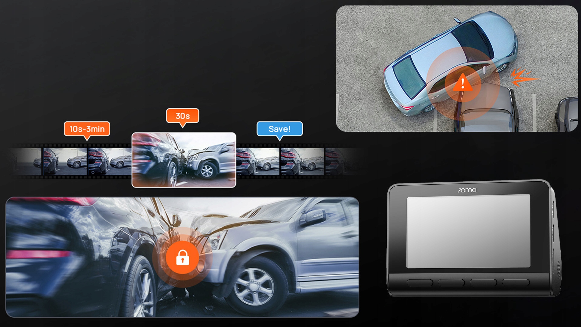 • Kamera 4K A810S pozwala uchwycić nie tylko sam incydent, ale także okoliczności, które do niego doprowadziły. Dzięki funkcji buforowanego nagrywania awaryjnego system rejestruje do 3 minut materiału przed wykryciem kolizji i 30 sekund po niej, zapewniając pełny ciąg zdarzeń.