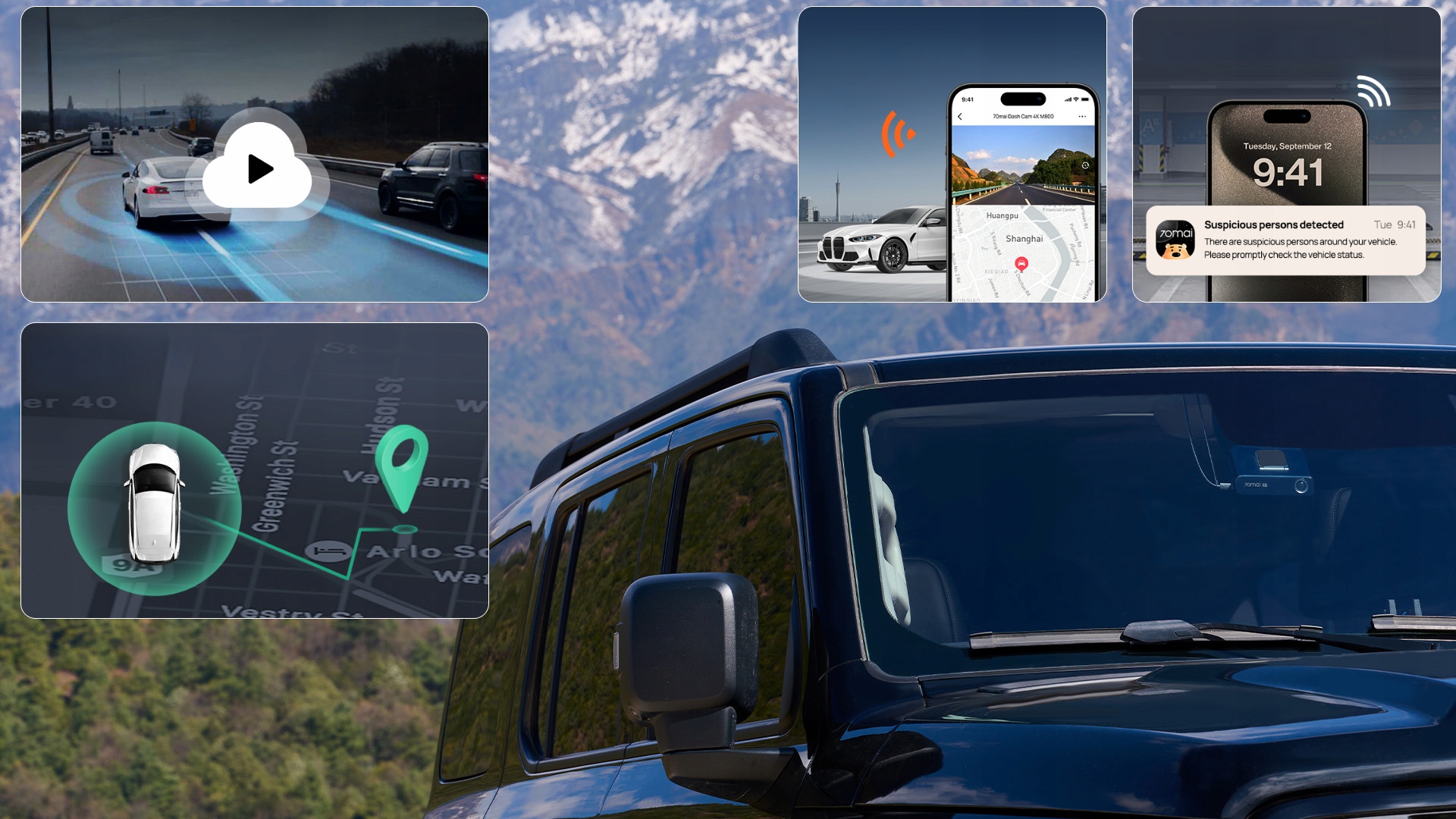Dzięki obsłudze zestawu 70mai 4G Hardwire Kit, kamera przekracza ograniczenia odległości, umożliwiając natychmiastowe powiadomienia z aplikacji, zdalny podgląd na żywo oraz aktualizacje lokalizacji w czasie rzeczywistym.