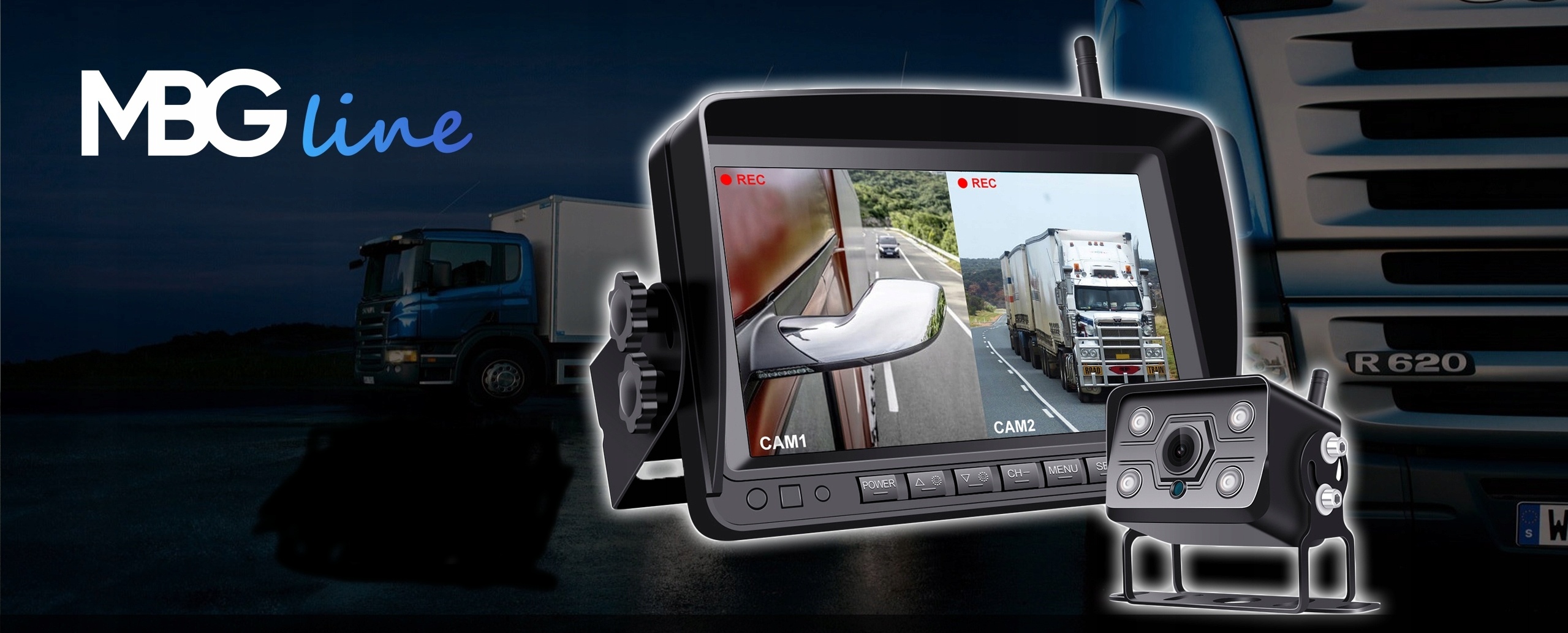 PROFESJONALNY BEZPRZEWODOWY ZESTAW COFANIA FHD MBG LINE MONITOR 7″ IPS+ KAMERA COFANIA 12-36V FHD 1080 + FUNKCJA REJESTRATORA!