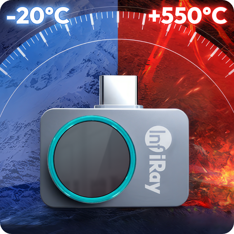Kamera termowizyjna InfiRay P2 Pro charakteryzuje się dokładnym pomiarem temperatury w zakresie od -20°C do +550°C z dokładnością do 2ºC lub 2% maksymalnej temperatury.