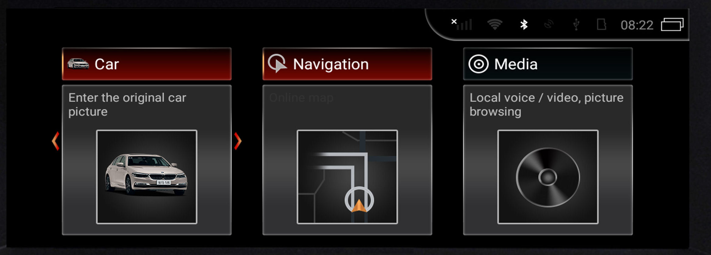 Nawigacja dedykowana pod BMW pozostawia wszystkie funkcje fabrycznego radia oraz możliwość sterowania z kierownicy. Wyświetlanie informacji z RDS-u odbywa się na tej samej zasadzie co na oryginalnym wyświetlaczu. Możliwe jest przełączenie między trybami pracy androida a naszego fabrycznego radia, które pokazuje wszystkie komunikaty i informacje z komputera w naszym BMW.