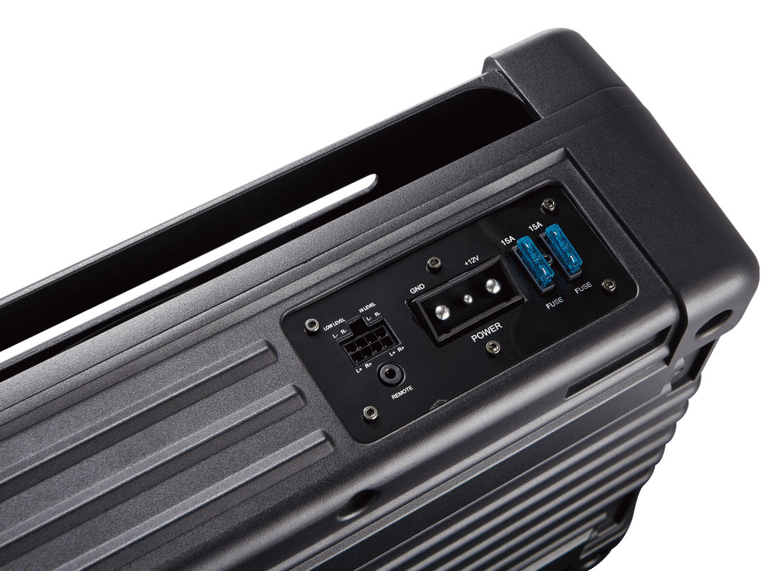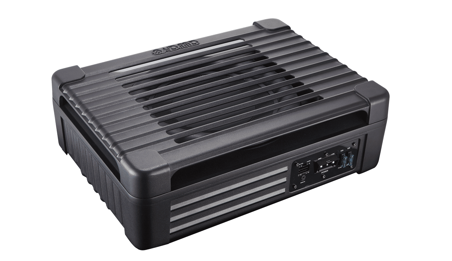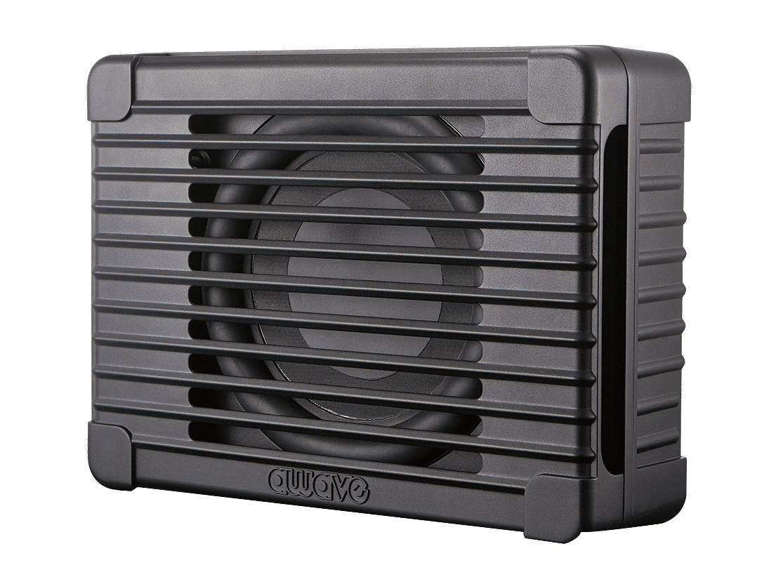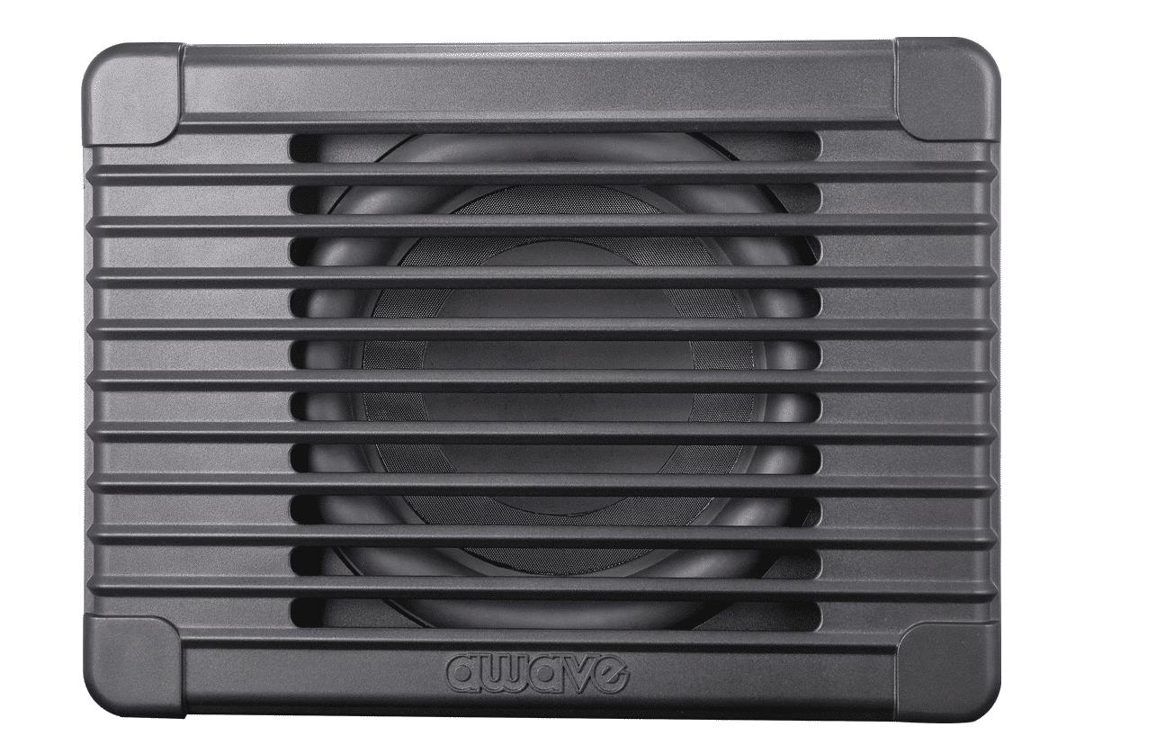 Subwoofer aktywny 11″ w aluminiowej obudowie.