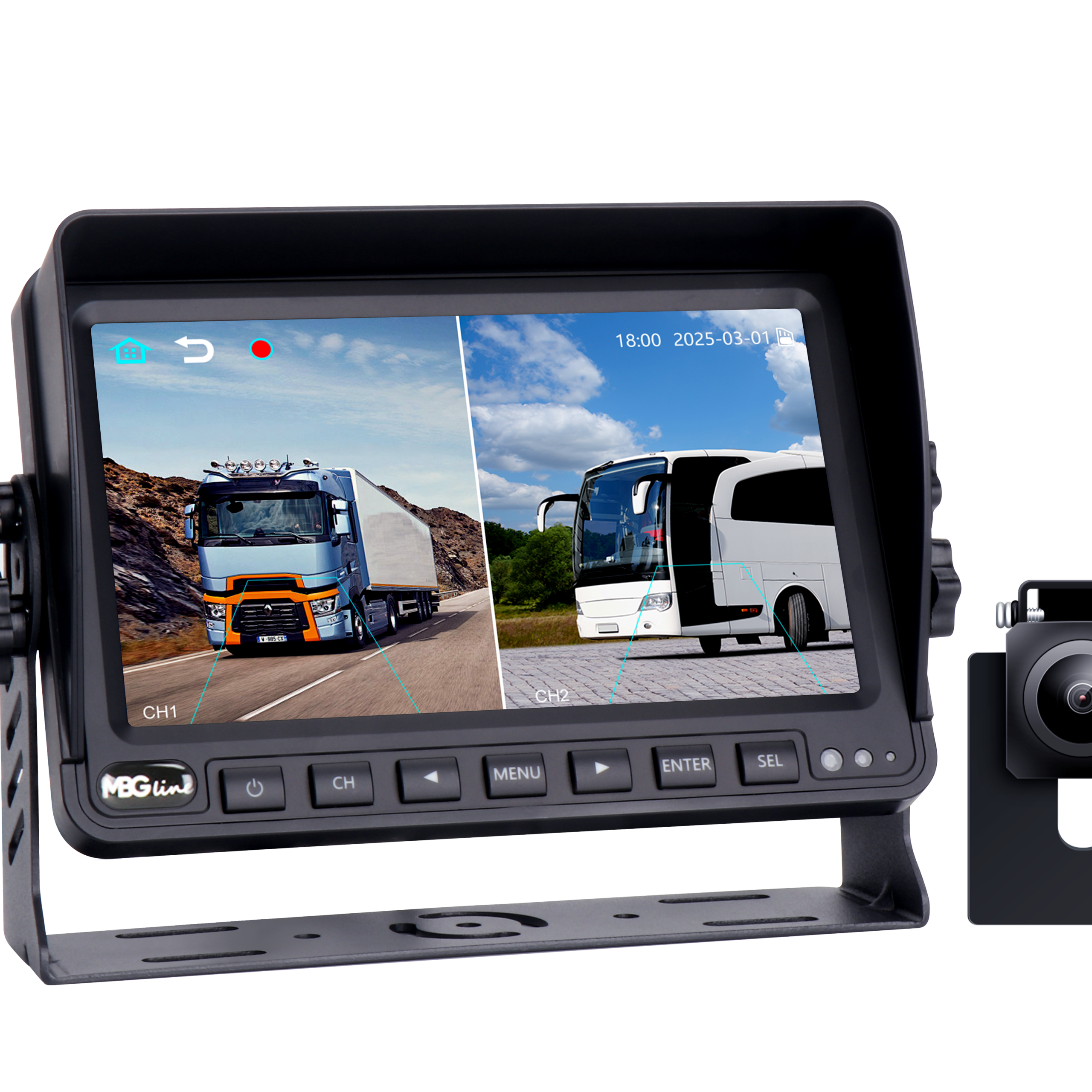 PROFESJONALNY PRZEWODOWY ZESTAW COFANIA HD MBG LINE MONITOR 7″ IPS+ 2x KAMERA COFANIA 170° + FUNKCJA REJESTRATORA! BSD – BLIND SPOT DETECTION – wykrywanie obiektów w martwym polu!